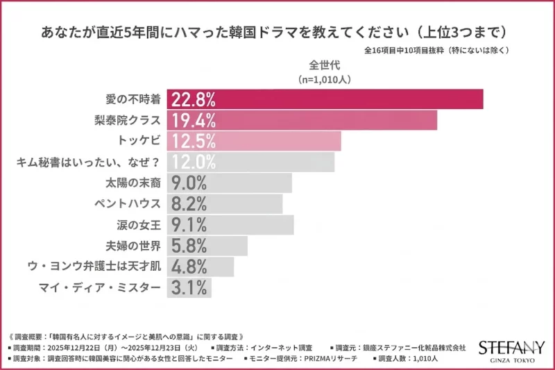 今回の調査は、2025年12月22日から12月23日にかけて、韓国美容に関心がある女性1,010人を対象にインターネットで行われました。