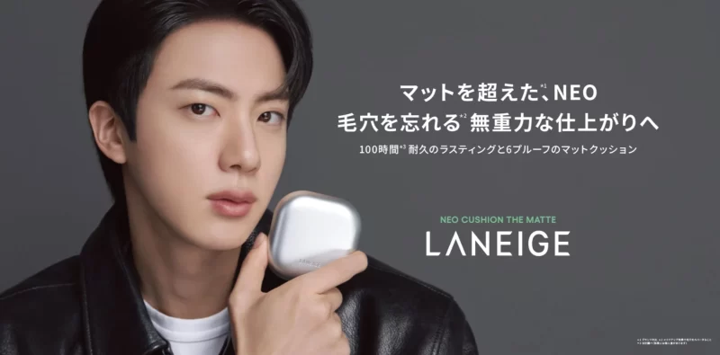 このキャンペーンは、LANEIGEとBTS Jinさんによる3回目のコラボレーションとなります。これまでの「クリームスキン」や「ネオクッション ミュイ」に続き、今回はリニューアルされた「ネオクッション ザ マット」と「ネオクッション ザ グロウ」がフィーチャーされています。
