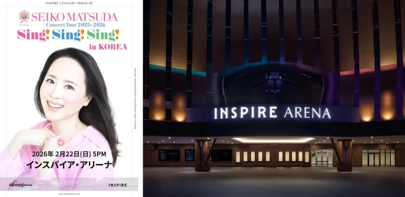 日本の音楽シーンで長きにわたり輝き続ける松田聖子さんが、デビュー45周年を記念したコンサートツアーの韓国特別公演「INSPIRE Series #7: 45th Anniversary SEIKO MATSUDA CONCERT TOUR 2025~2026 “Sing! Sing! Sing!” in Korea」を、韓国仁川のインスパイア・アリーナで開催することが決定しました!