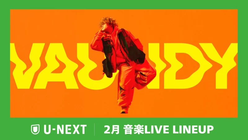 動画配信サービス「U-NEXT」が、2026年2月に配信される音楽ライブコンテンツのラインナップを発表しました!Vaundyさんの自身最大規模となるドームツアー東京ドーム公演や、結成15周年を迎える超特急さんのアリーナツアーファイナル公演など、見どころ満載のライブが目白押しです。