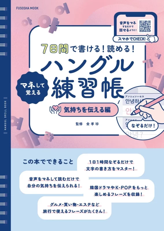 K-POPや韓国ドラマ、推し活に夢中な皆さん、もっと韓国語を理解して楽しみたいと思いませんか?そんな願いを叶えるハングル入門書『7日間で書ける!読める!マネして覚えるハングル練習帳 気持ちを伝える編』(監修:金孝珍)が、2026年2月13日(金)に扶桑社から発売されます。