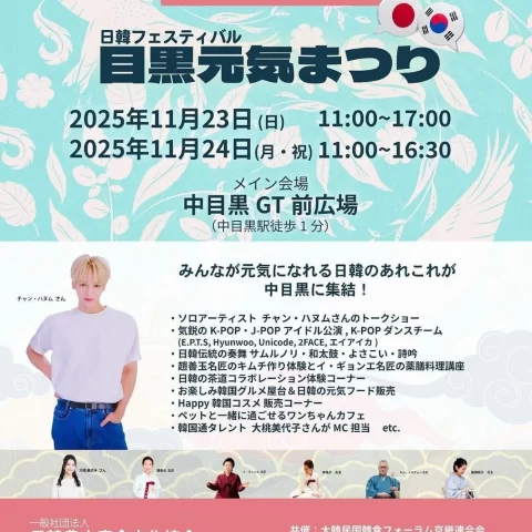 2025年11月23日(土)と24日(日)の2日間、東京・中目黒GT前広場にて「日韓交流フェスティバ...